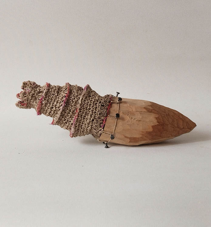 Pine wood, hemp, and metal  8 × 24 × 6 cm