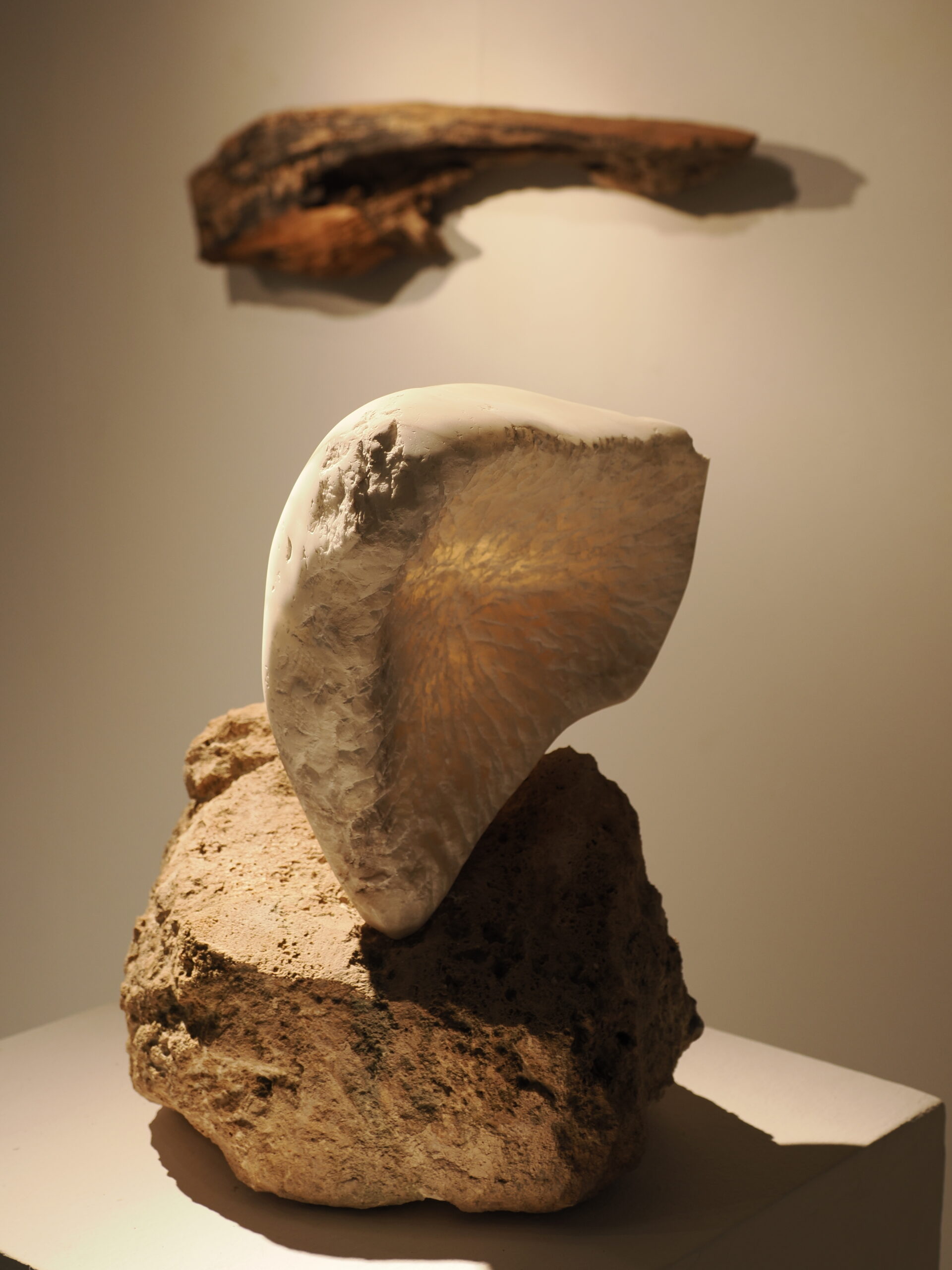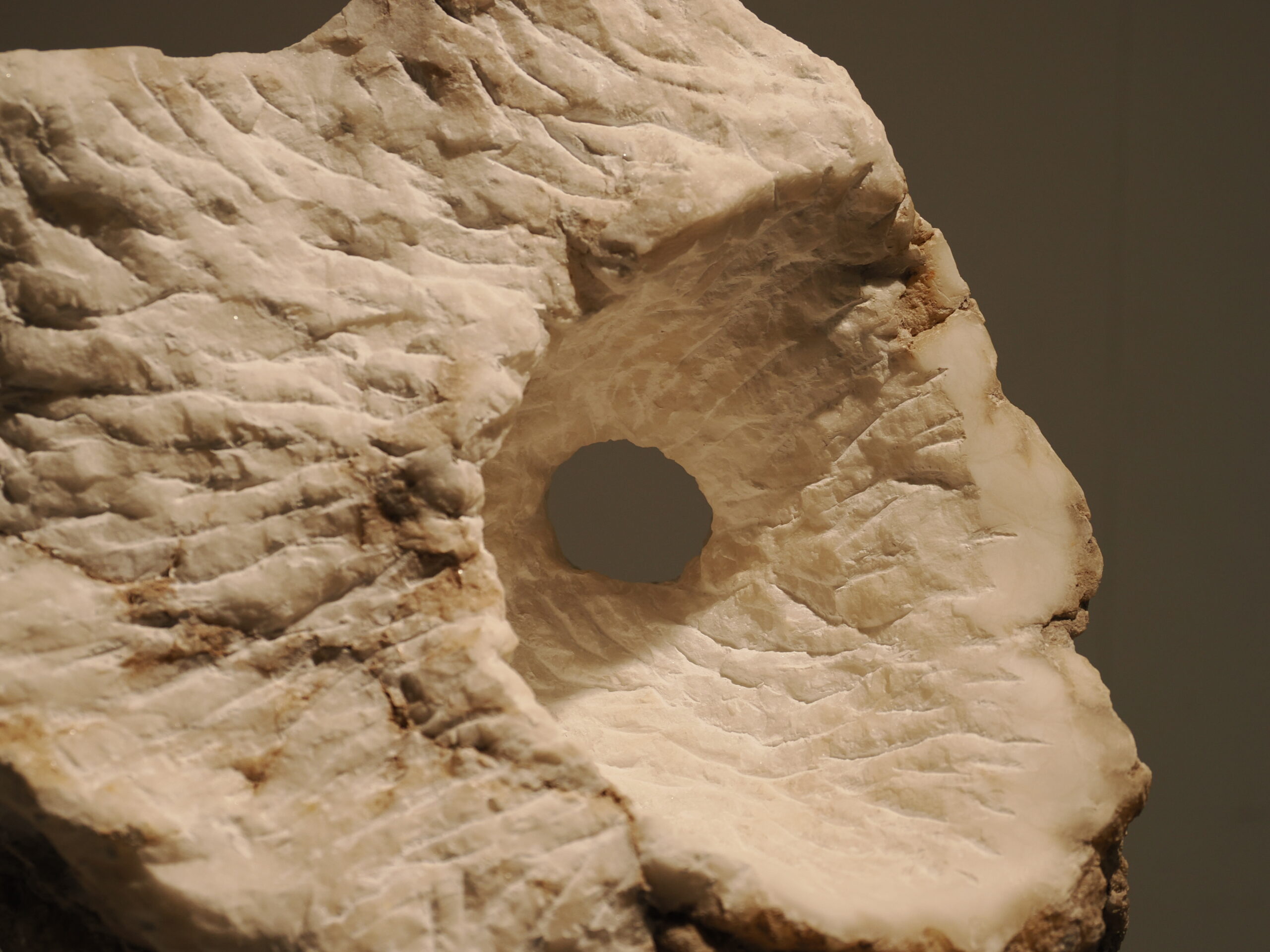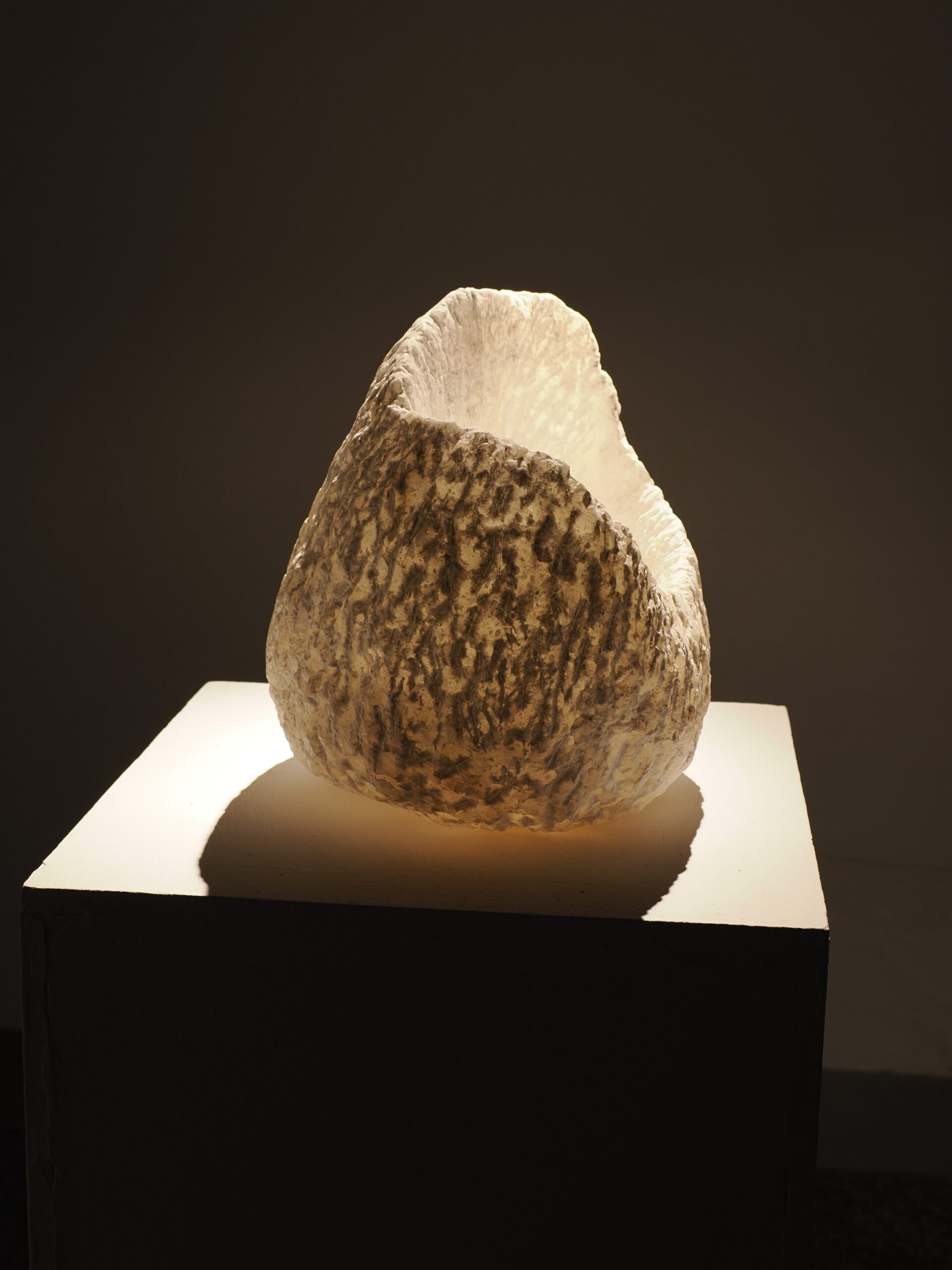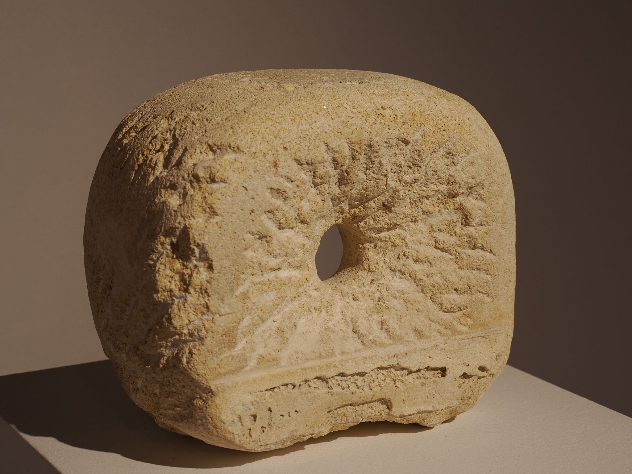 Póros is an exhibition bringing together sculptures made of limestone, sandstone and alabaster, marked by erosion and porosity. In each piece, the artist explores bone-like forms drawn from human and animal bodies, reflecting the passage of time and the slow decomposition of matter into dust.